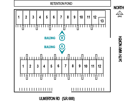 Mid County Showrooms & Workshops is made up of twelve 1500 SF (30' x 50') showroom units with a storefront right on Ulmerton Road and eleven 1500 SF (30' x 50') and one 2250 SF workshop/warehouse units just behind the showrooms. The units are constructed of concrete block with an insulated metal roof. The ceiling is 16' high at its lowest point. All units at the Center have one overhead 10' x 12' roll-up door plus two pedestrian doors. All driveways and parking areas are paved with concrete. Each showroom unit features a glass storefront with a 30' x 12' finished office/showroom in front and a 30' x 38' shop in the rear. Each workshop/warehouse unit features one finished office. All units have a bathroom, a laundry tub sink, electrical outlets around the inside perimeter wall of the shop, skylights, a roof ventilator, and a sealed and coated concrete floor. Some units have been upgraded with 3-phase electric panels, central HVAC, and additional build-out. For more information please Contact Us.