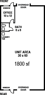 Suncoast Workshop/Warehouse Center is made up of thirty 1800 SF (30' x 60') workshop/warehouse units. The units are constructed of concrete block with an insulated metal roof. The ceiling is 16' high at its lowest point. All units at the Center have two overhead 10' x 12' roll-up doors, one on each end, plus two pedestrian doors, also one on each end. All driveways and parking areas are paved with concrete. Each unit features a finished office, a bathroom, a laundry tub sink, electrical outlets around the inside perimeter wall of the shop, skylights, a roof ventilator, and a sealed and coated concrete floor. Some units have been upgraded with 3-phase power, central HVAC, and additional build-out. For more information about our workshop/warehouse units, please Contact Us.